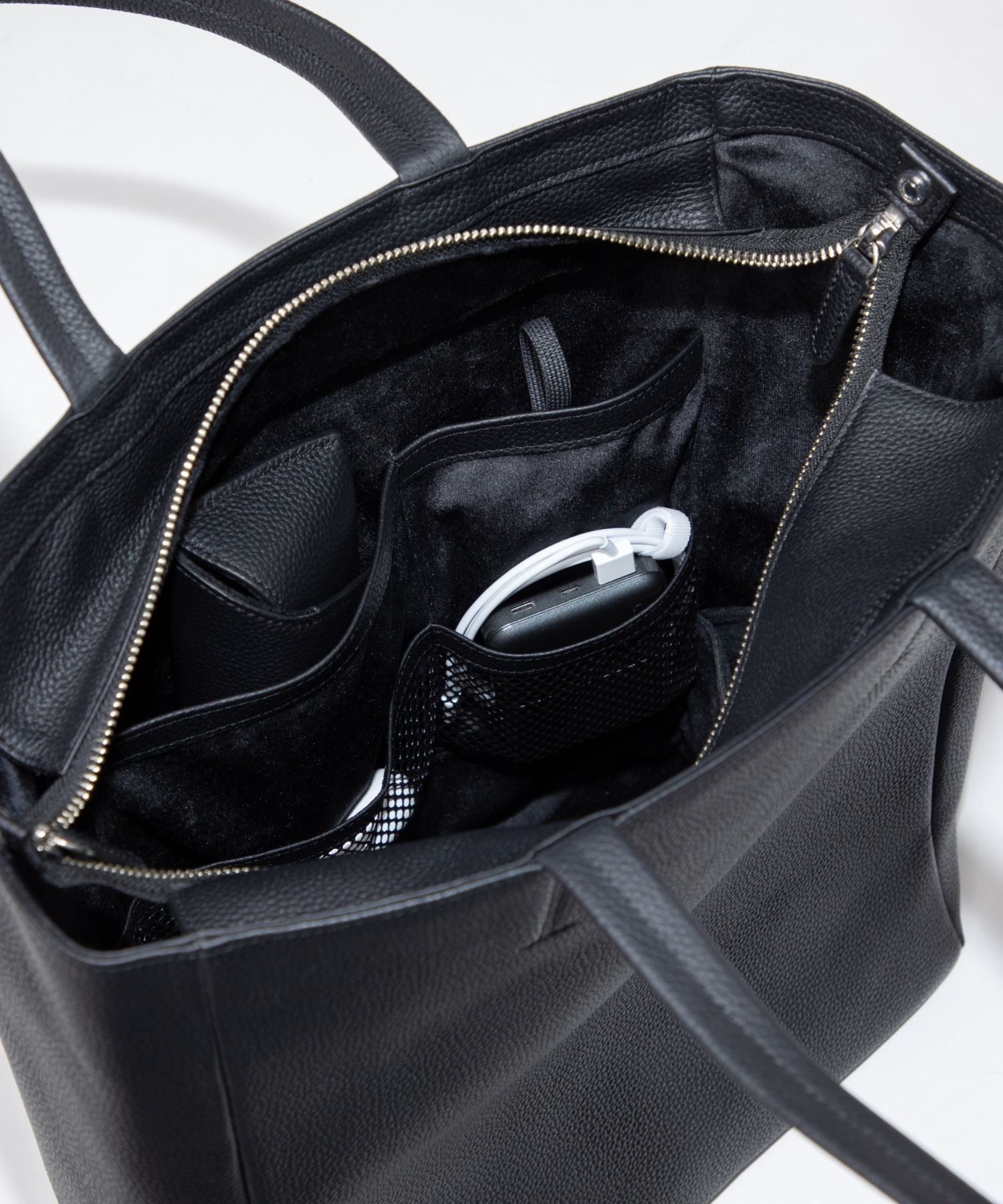 バッグの内装には、肌触りの良いマイクロスエード調の素材を使用。高級感を演出するだけでなく、収納したアイテムを優しく保護します。