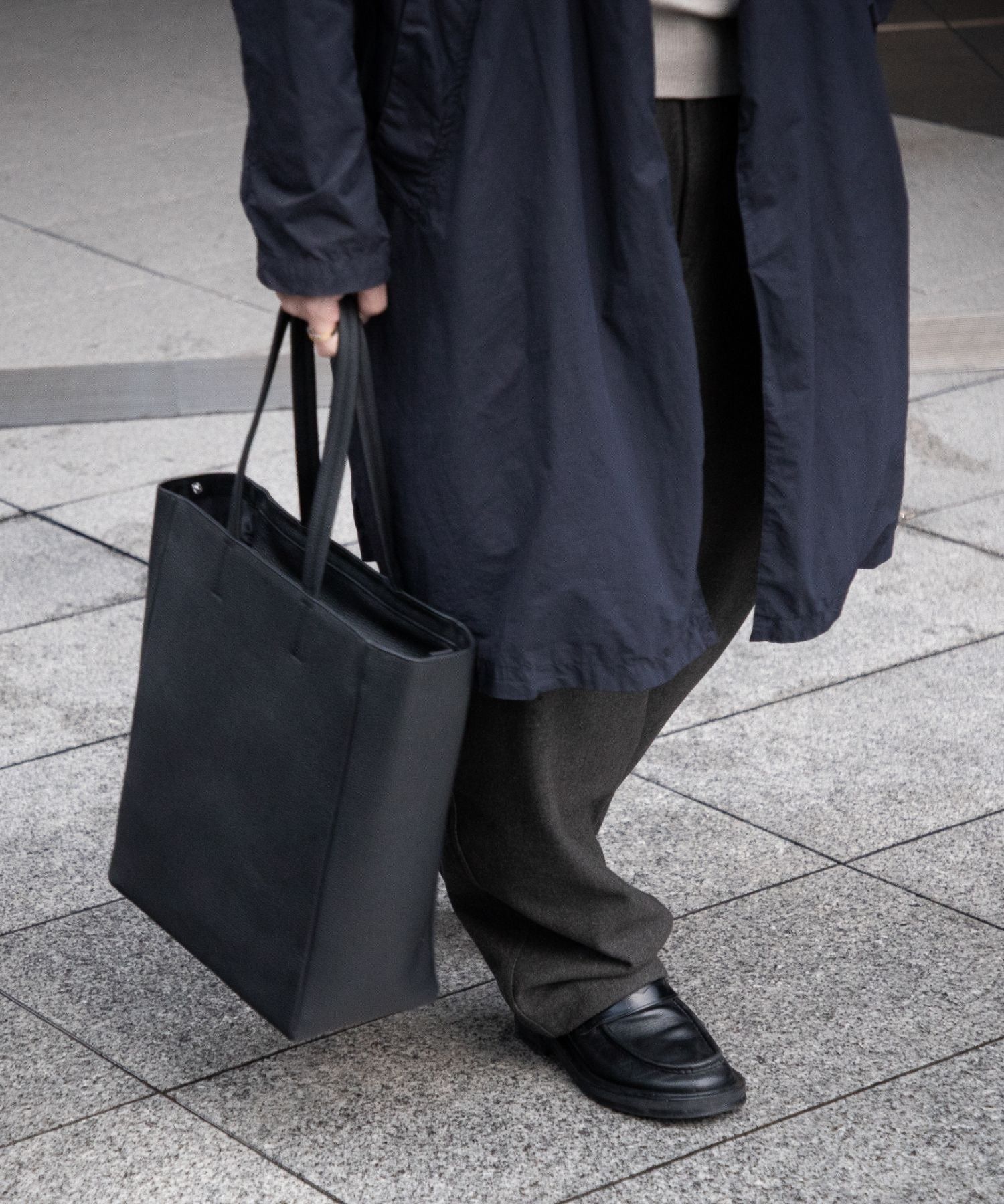 取っ手は、手持ちはもちろん、肩掛けも可能な絶妙な長さに設計。荷物の量やスタイルに合わせて、スマートな持ち方を選べます。