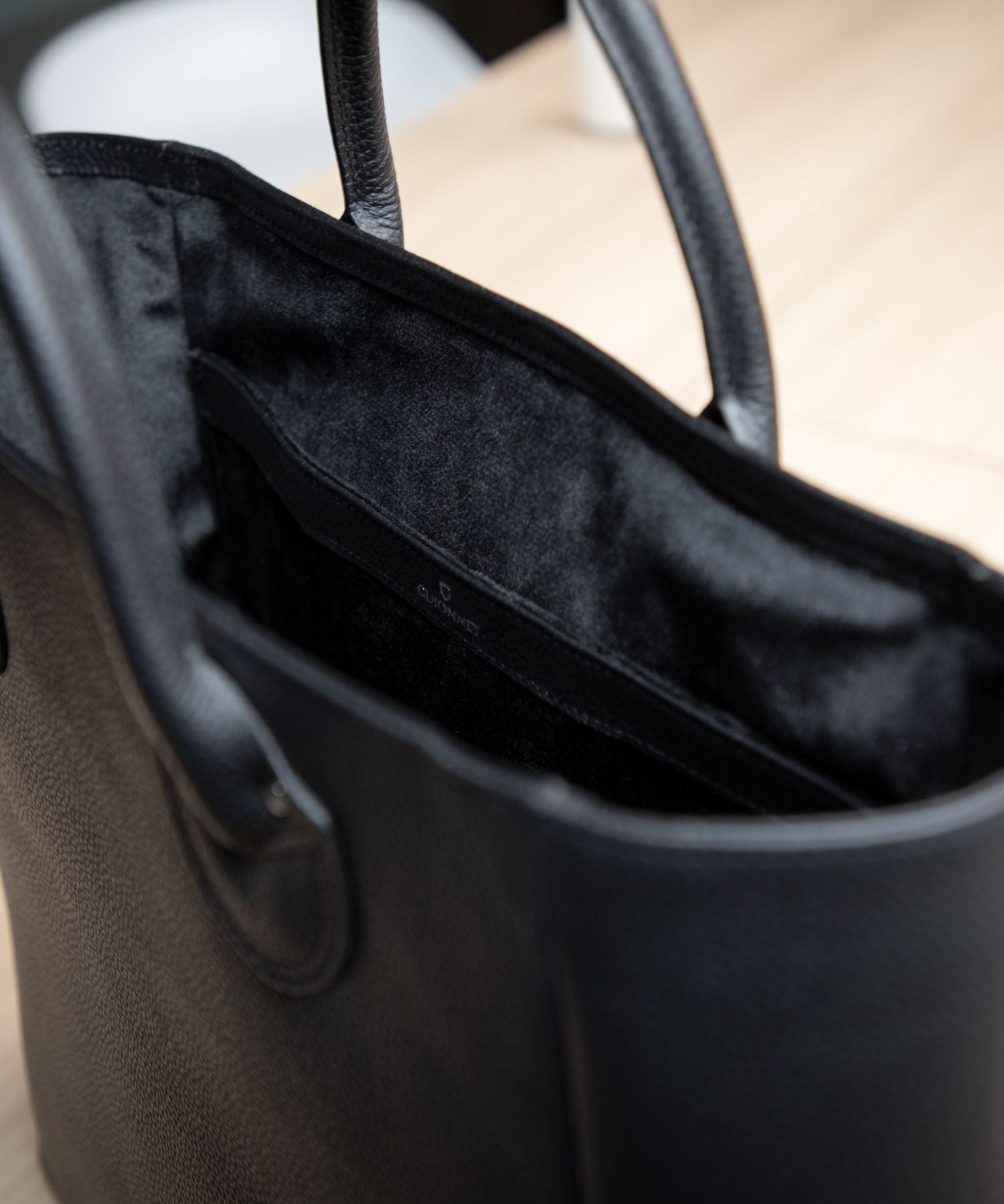 バッグの内装には、肌触りの良いマイクロスエード調の素材を使用。高級感を演出するだけでなく、収納したアイテムを優しく保護します。