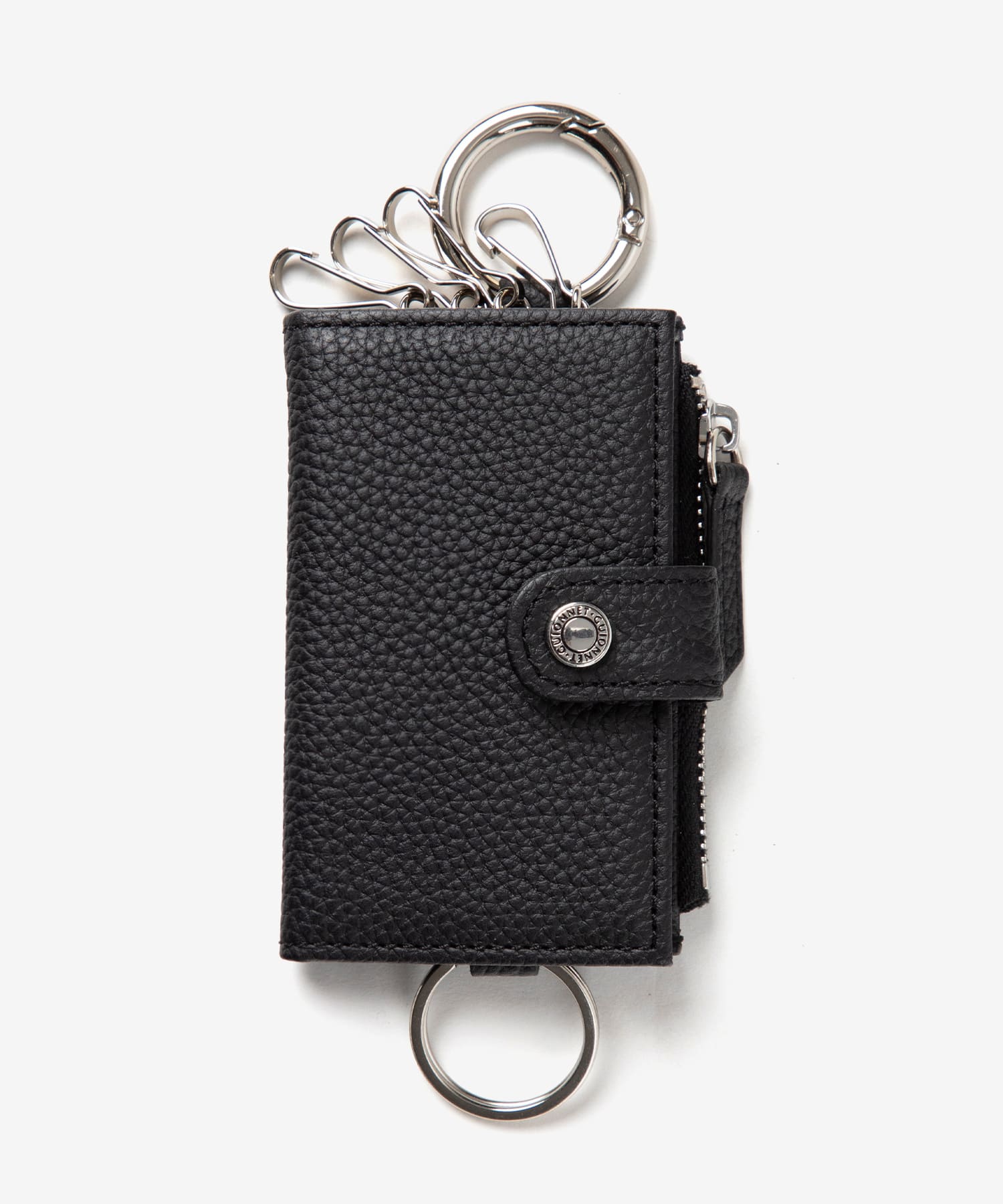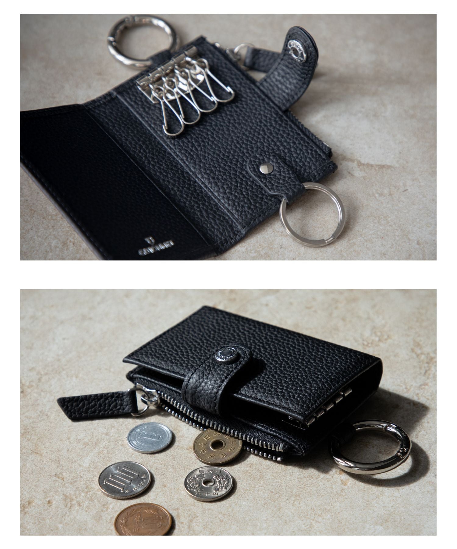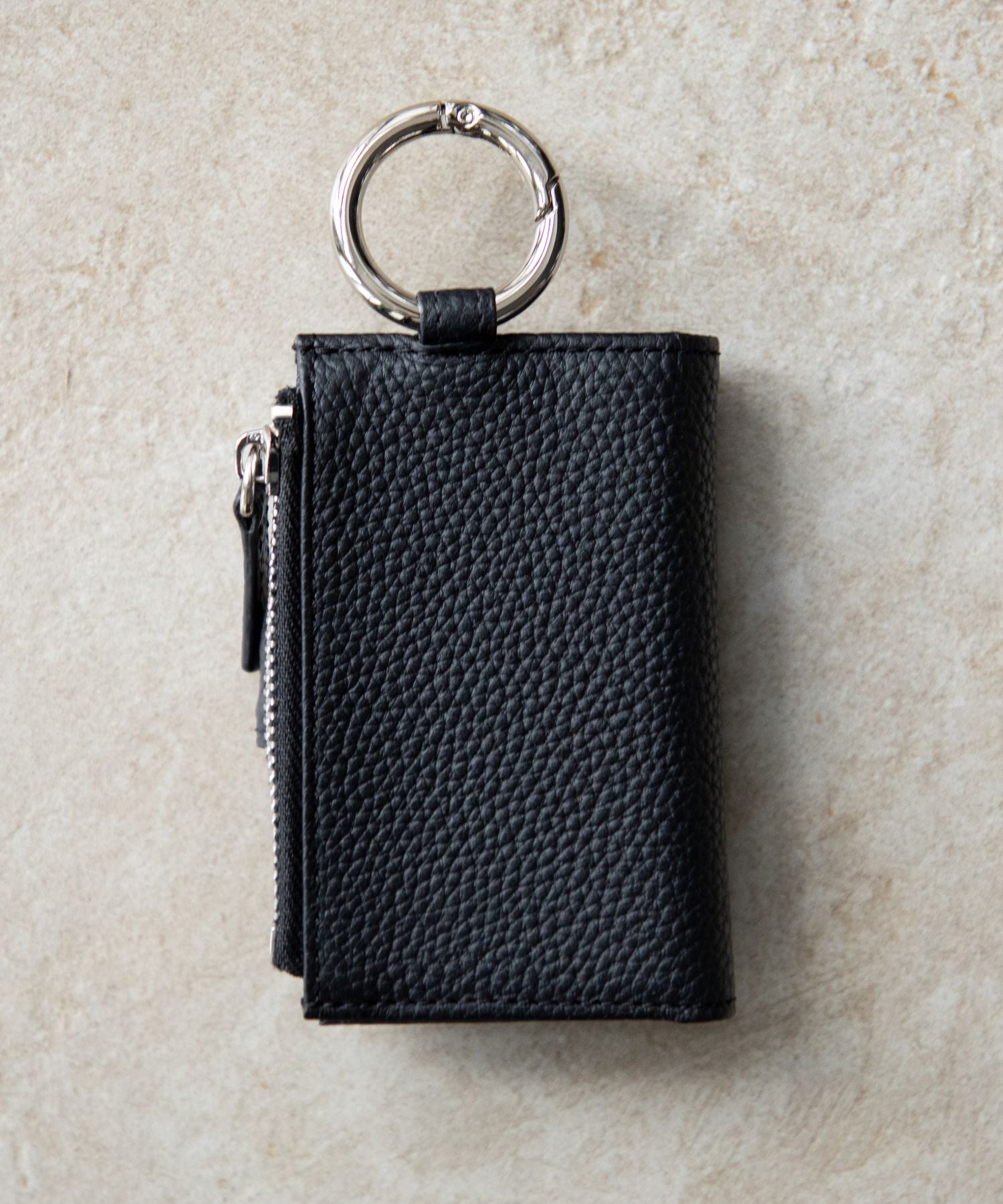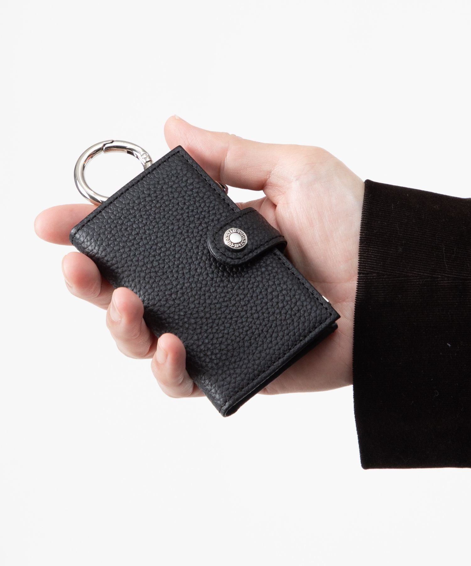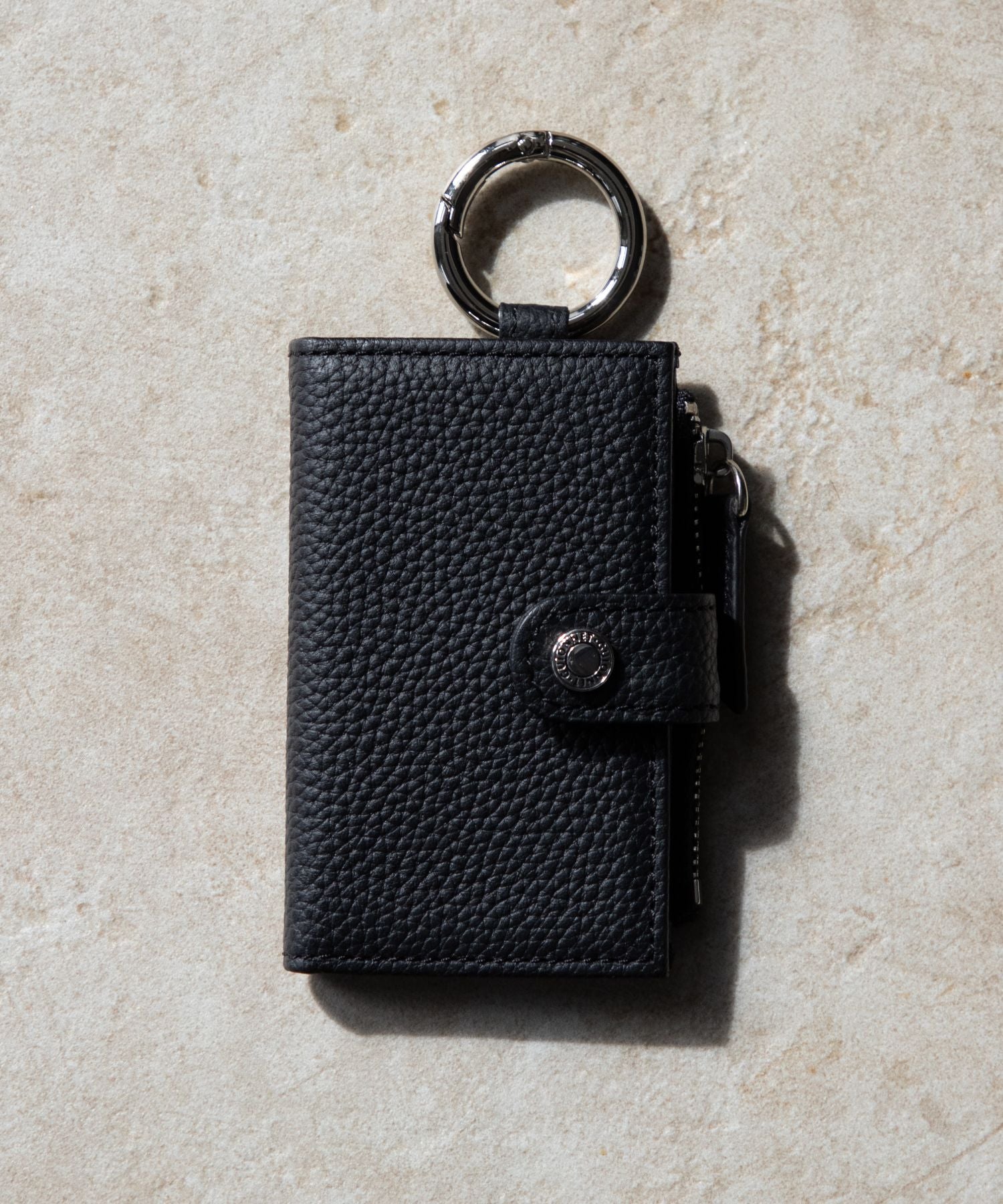 上段には、ベルトループやバッグのハンドルなどに簡単に取り付けられる丸型カラビナを装備。鍵をスマートに携行でき、必要な時にサッと取り出せる利便性を提供します。
