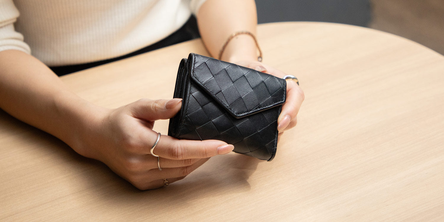 片手に収まるサイズ感で、持ち運びに便利なミニ財布。