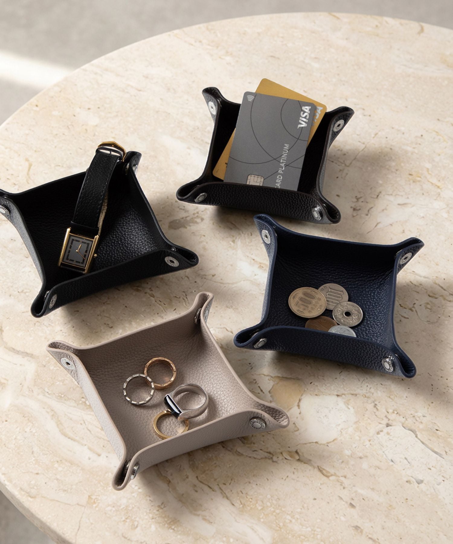 アクセサリーや鍵、カードなどをスタイリッシュに収納できるデザインが特徴です。コンパクトながらも存在感があり、デスクや玄関に置くだけで空間を引き締めます。