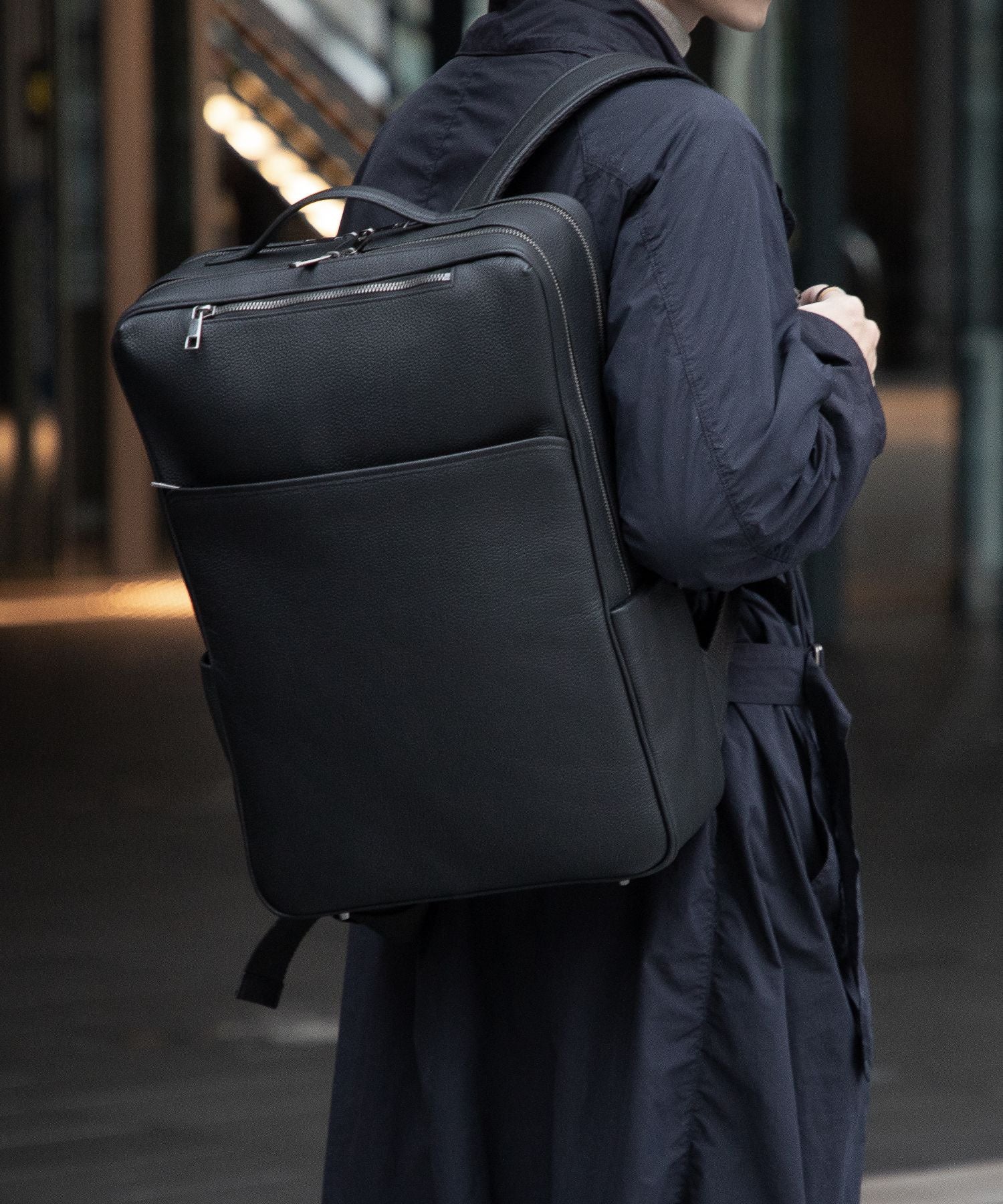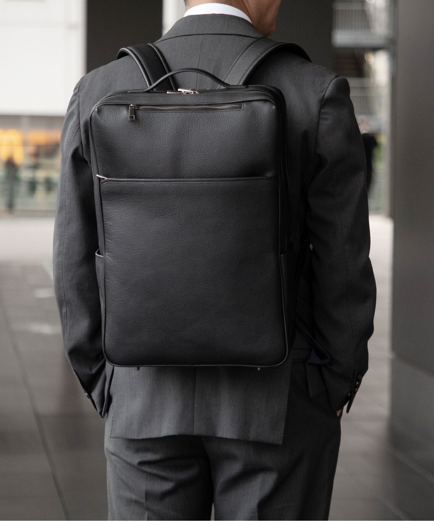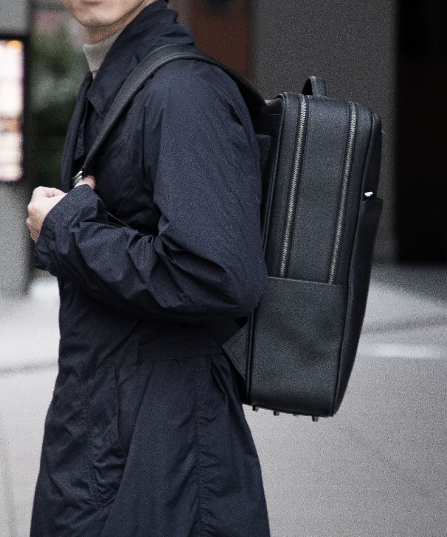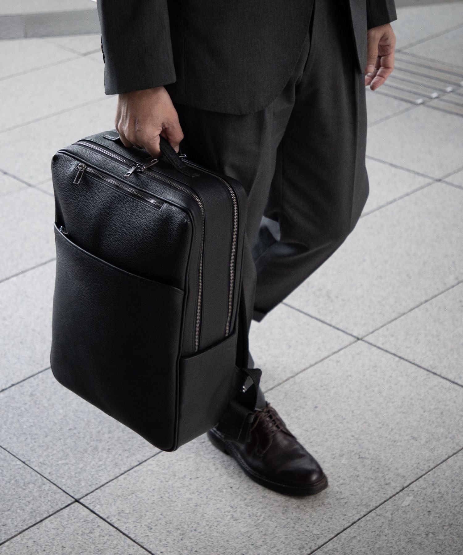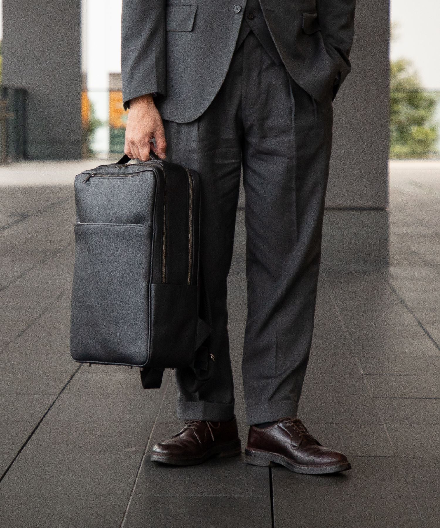 【出張の相棒】[キャリーオール バックパック] - 撥水レザー「ドライグレイン」が叶える、スマートな大容量バックパック。